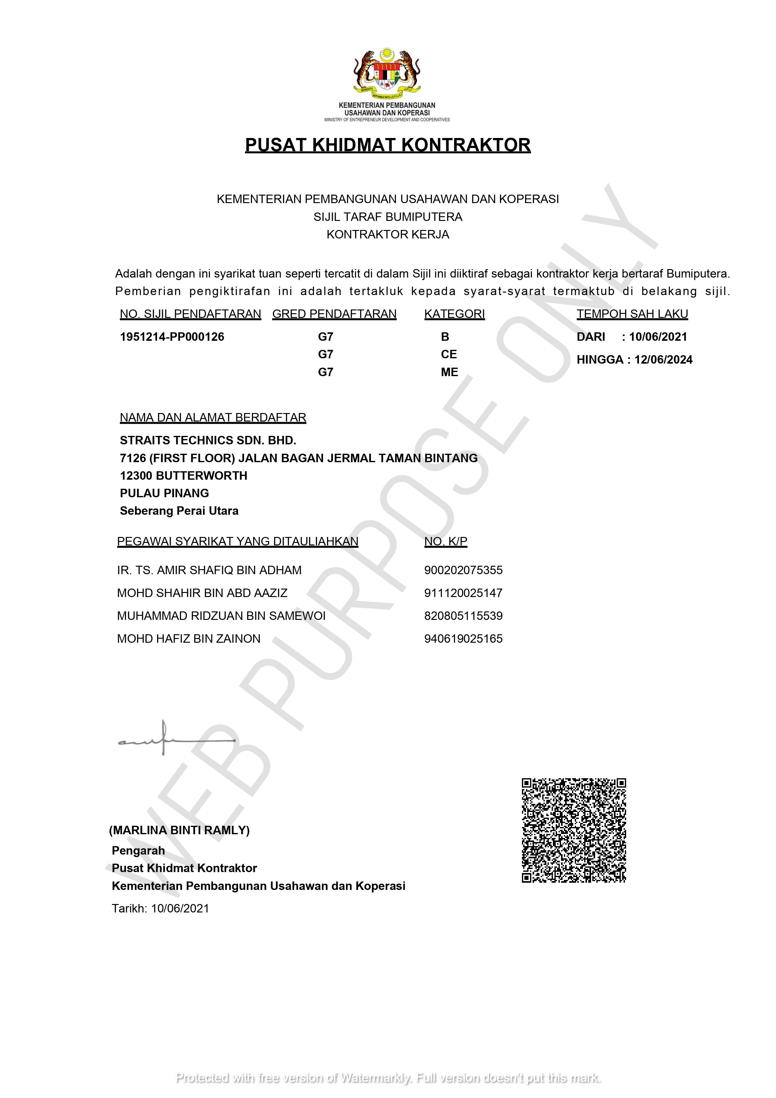 Sijil Kontraktor Kerja Taraf Bumiputera Gred 7