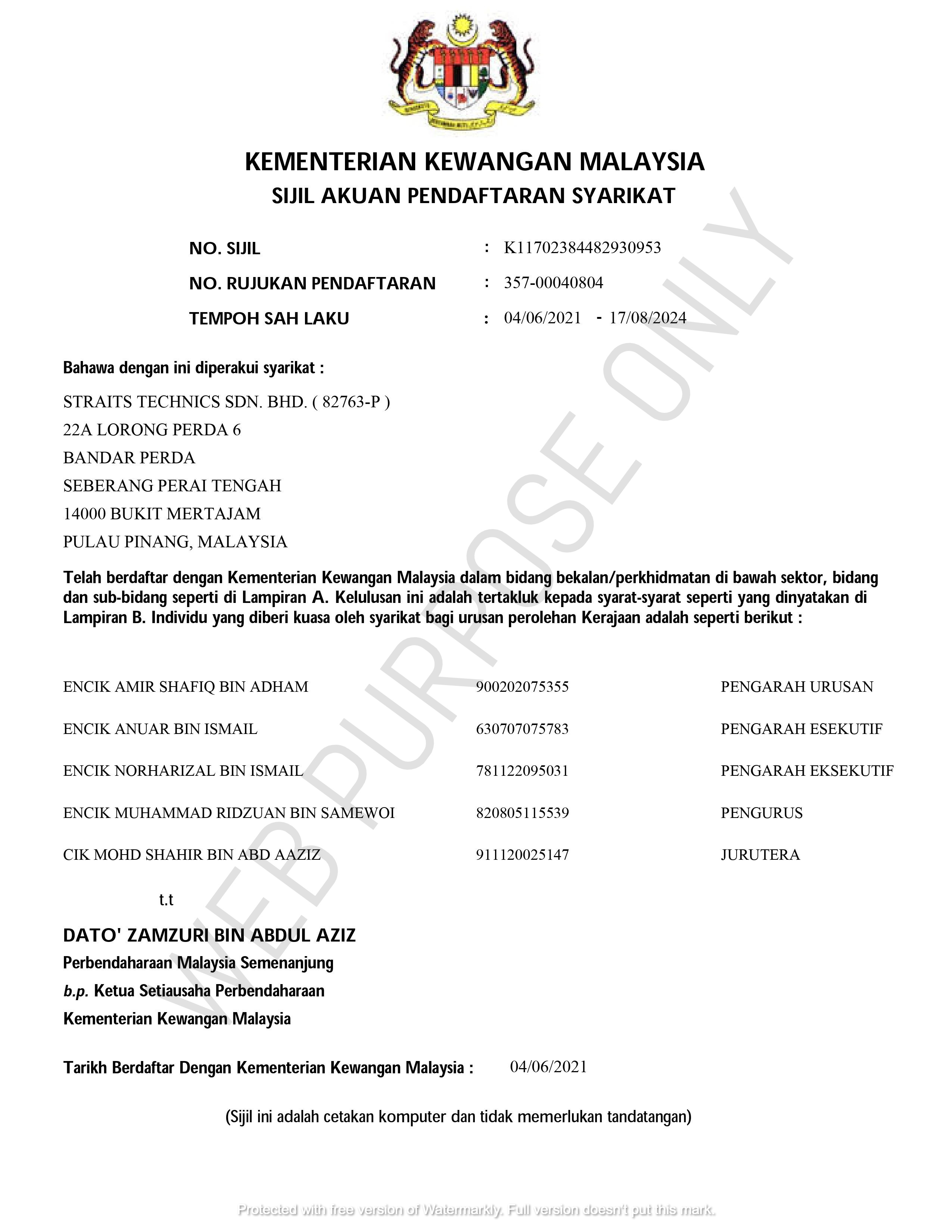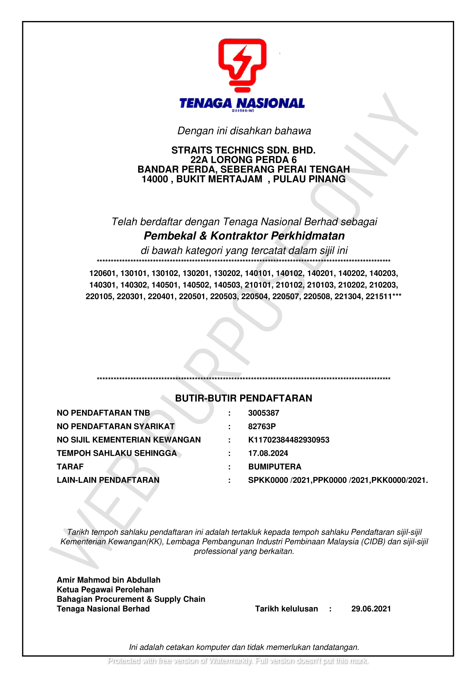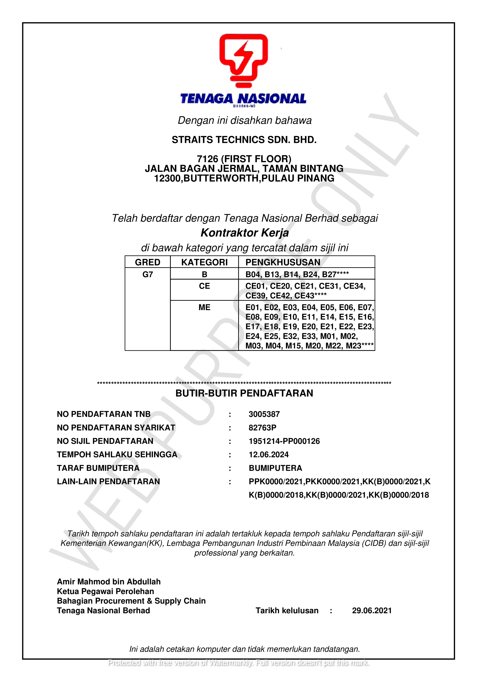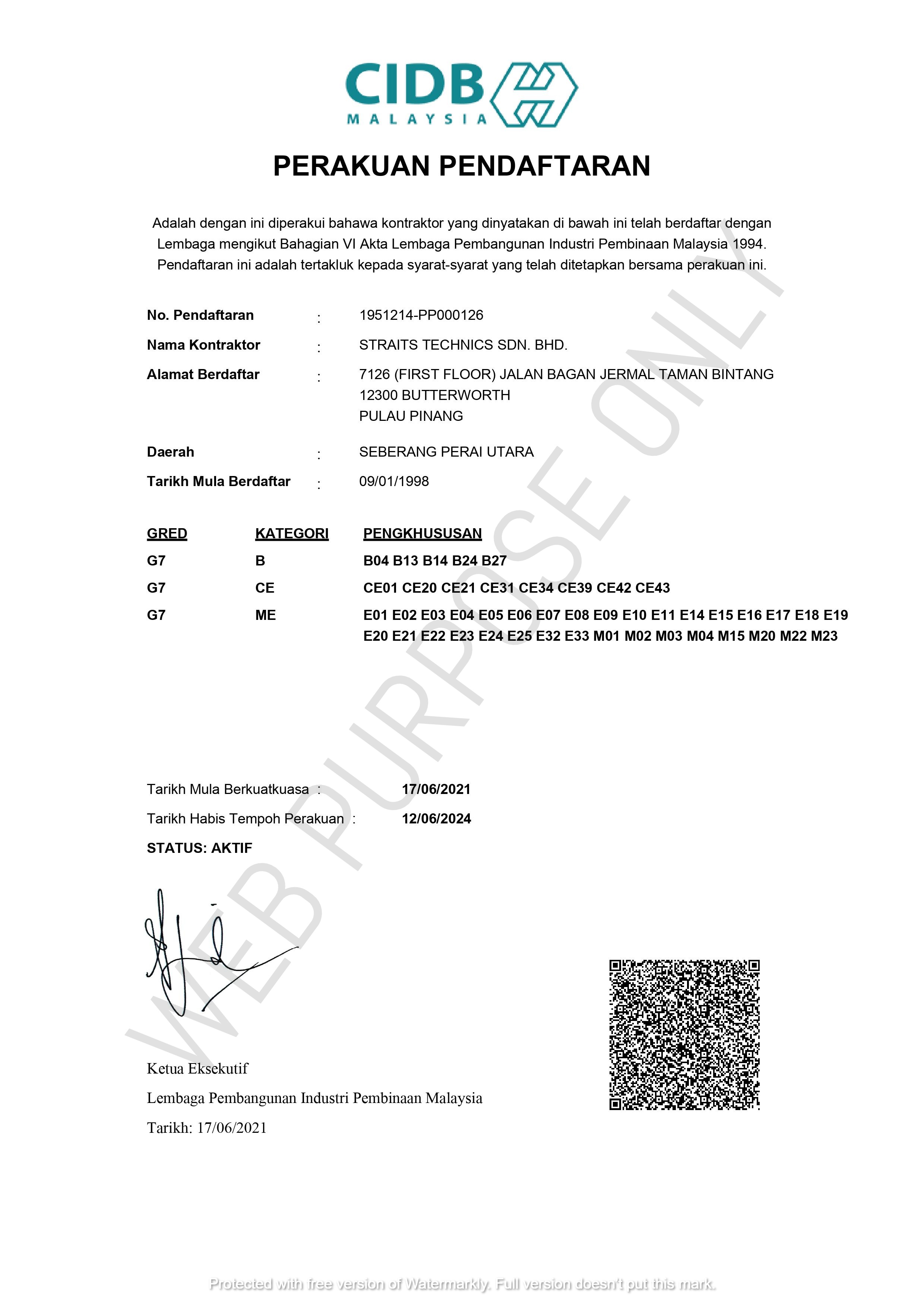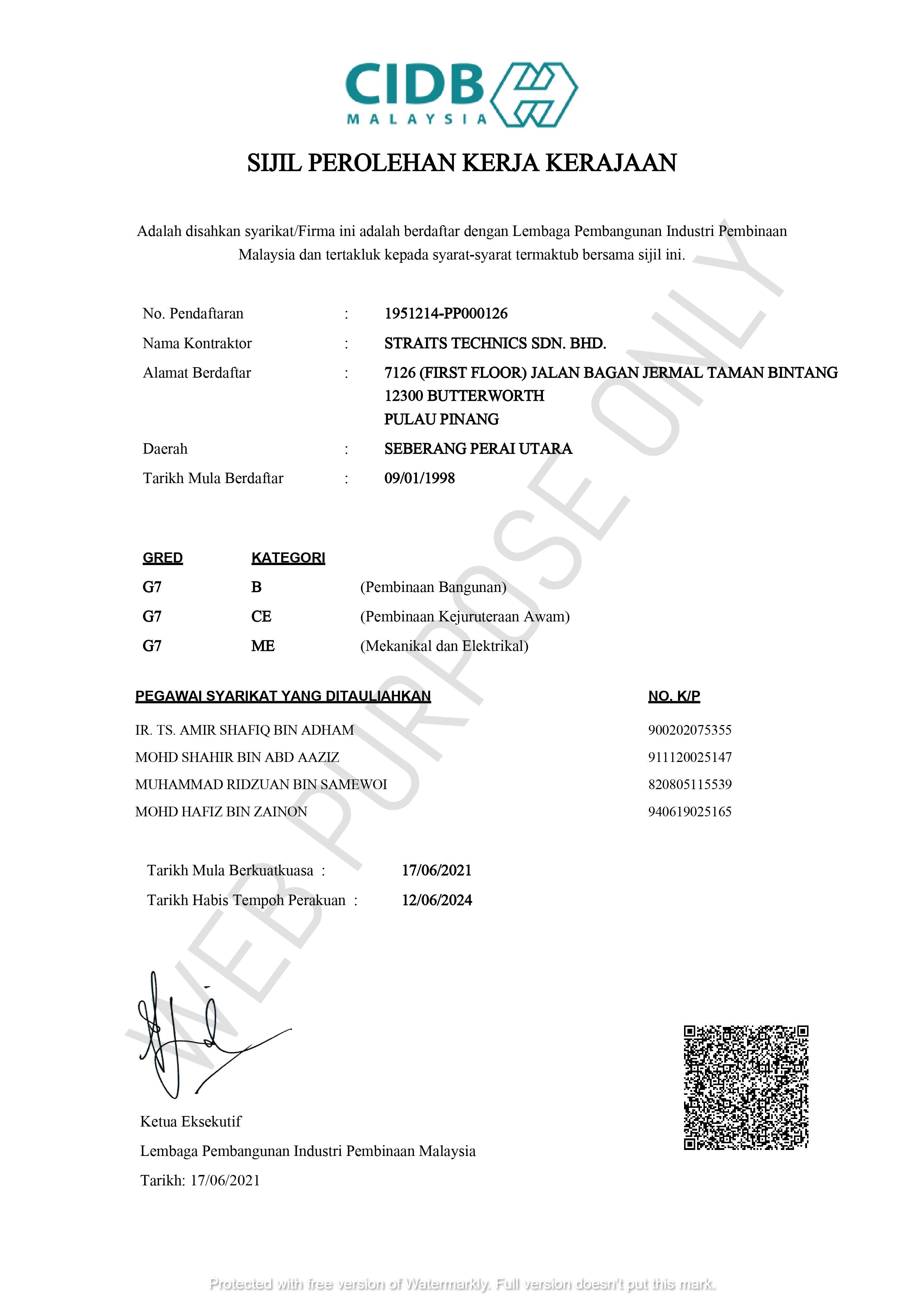 Sijil Kontraktor Kerja Taraf Bumiputera Gred 7
